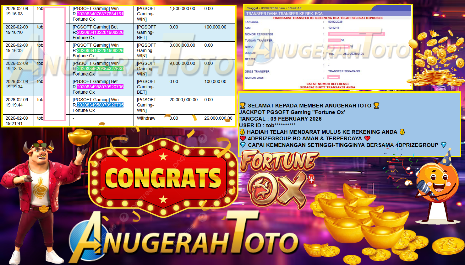 - ANUGERAHTOTO JACKPOT PGSOFT Gaming ”Fortune Ox” Rp 26,000,000,- LUNAS